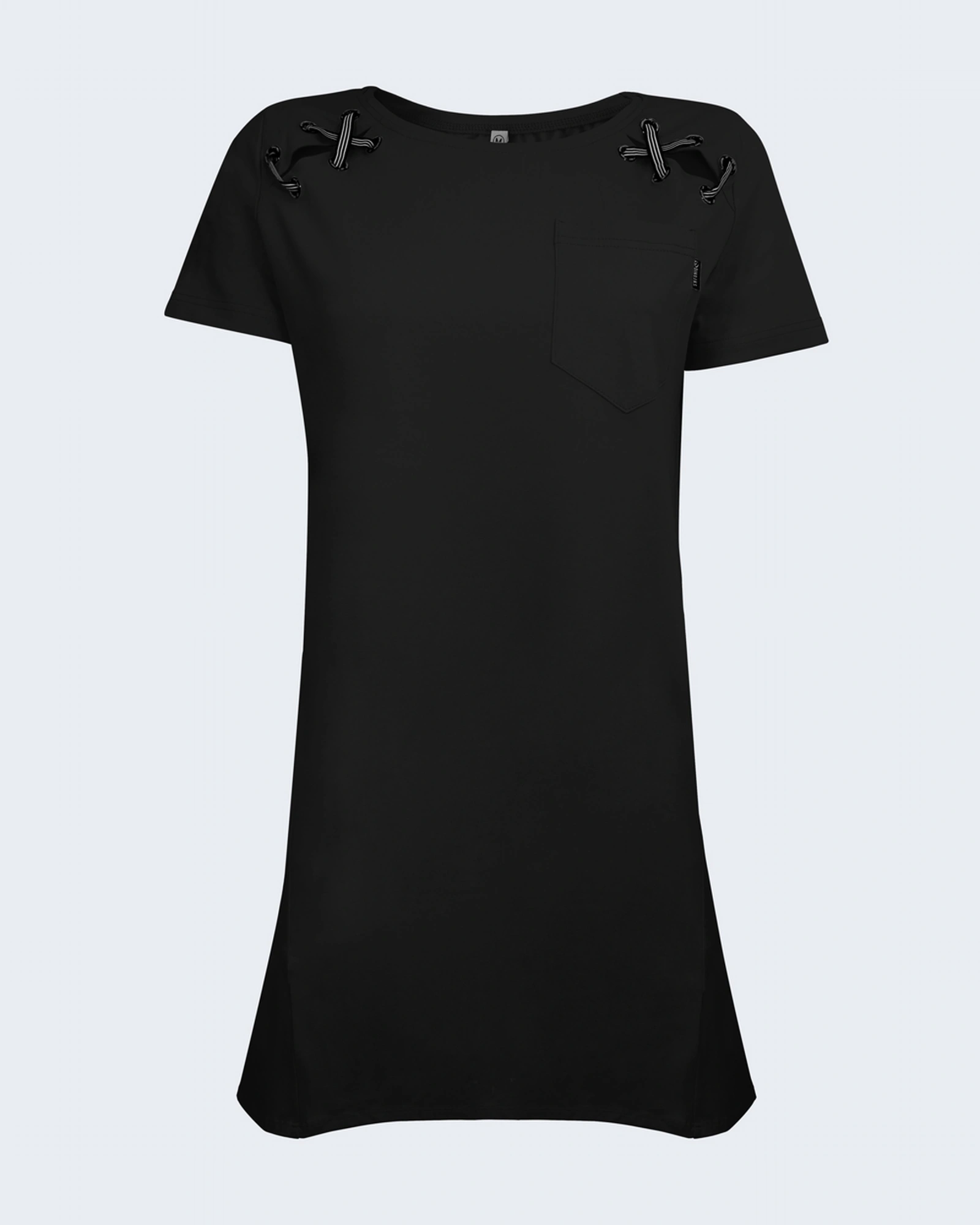 Дамска туника: – Тънка материя – Свободна кройка – Декоративни капси с връзки – Декоративен джоб в горната част – Произведено в България