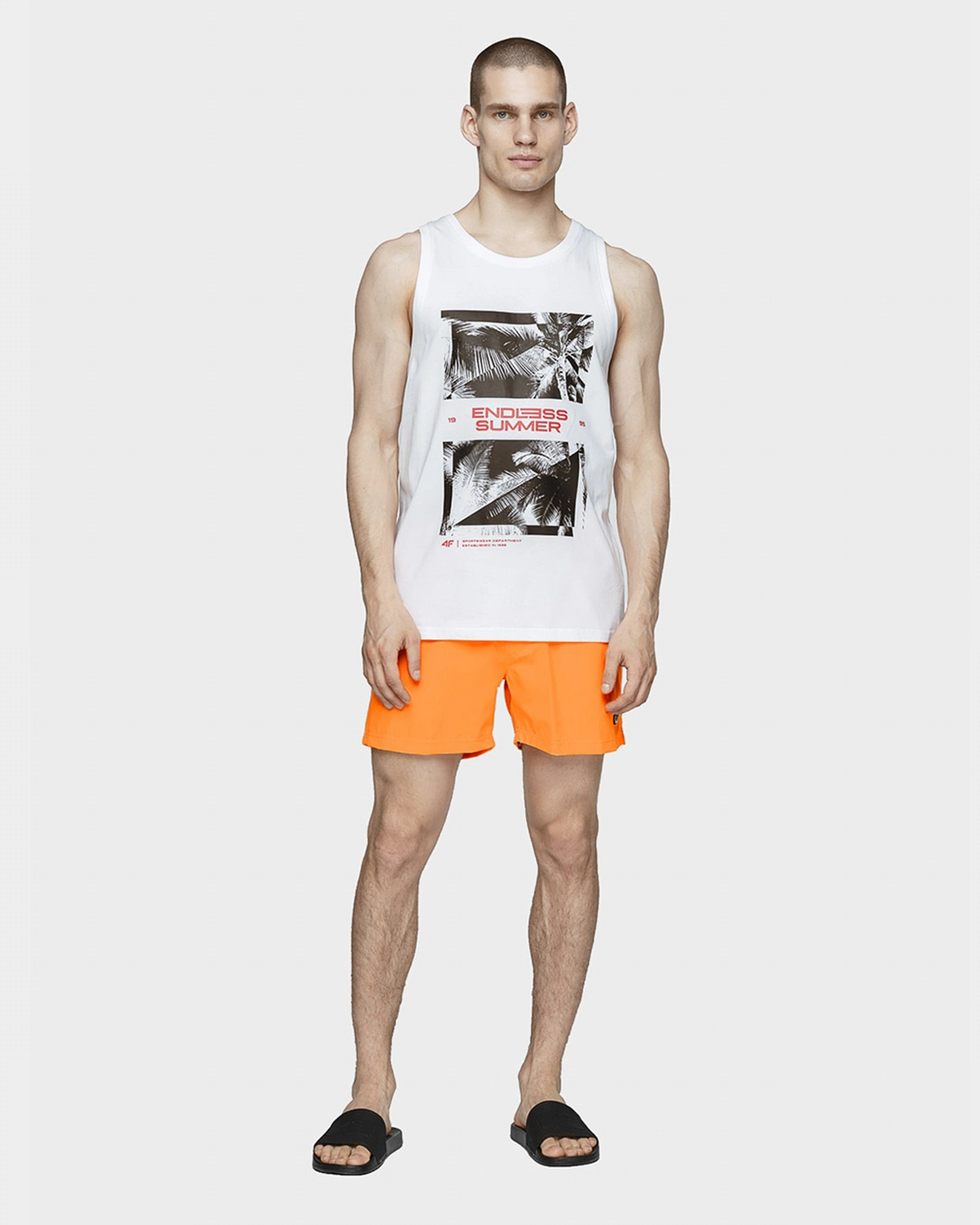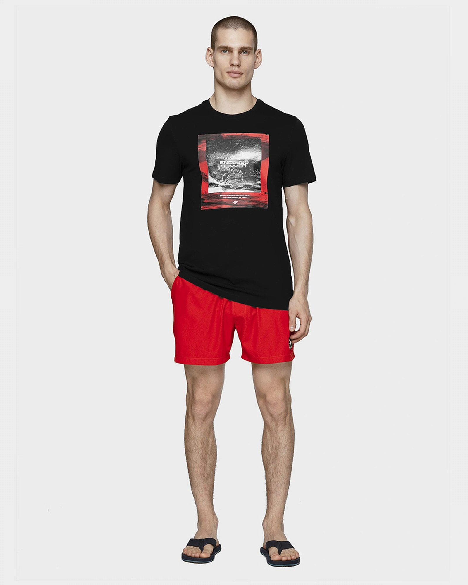 Мъжки къси панталони, подходящи за плаж: – Бързосъхнеща материя – Свободен силует – Два странични джоба – Заден джоб – Колан с ластик и връзка – С бандаж