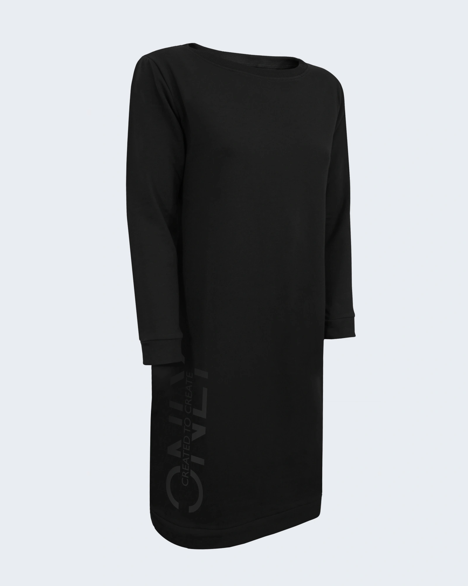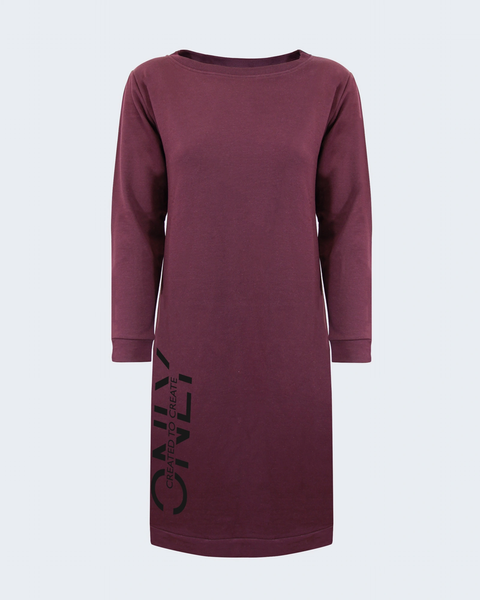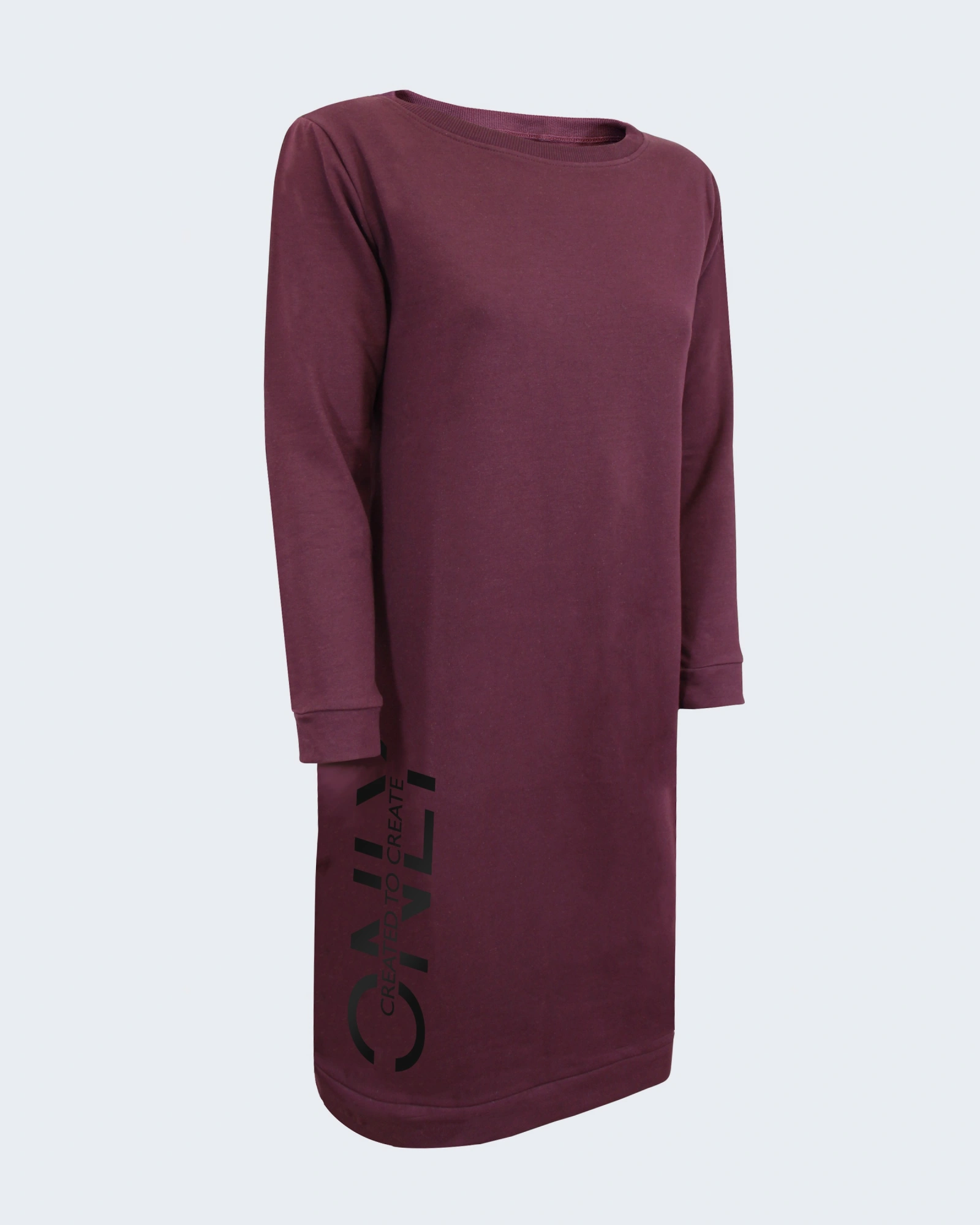 Дамска ватирана рокля с дълъг ръкав: – Плътна материя, подходяща за Есенно-Зимния сезон – Обло деколте – Щампа в долната част – Свободна кройка – Еластични маншети на ръкавите – Произведено в България