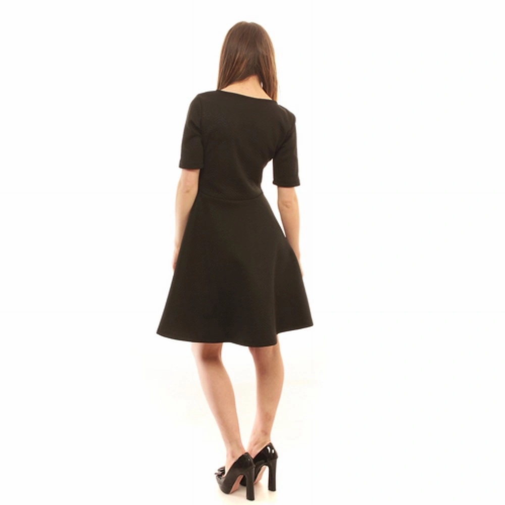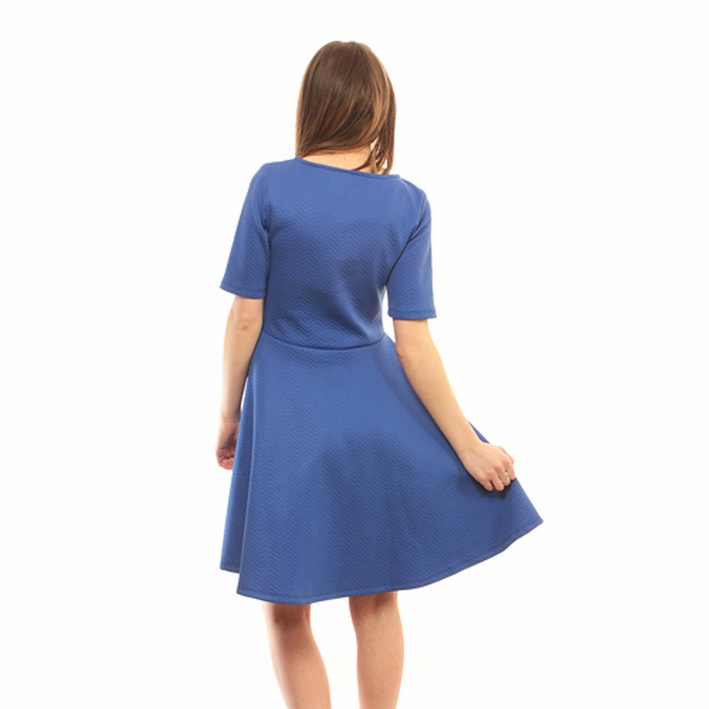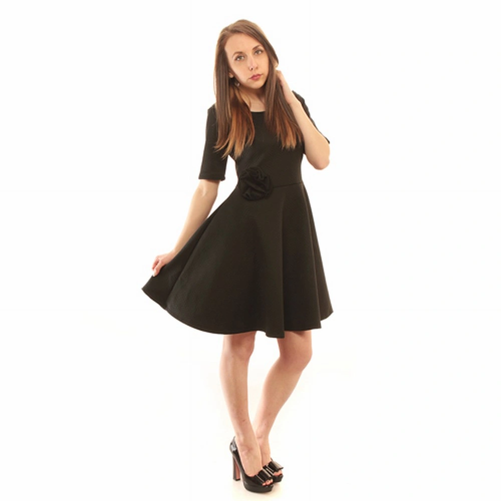 Елегантна рокля подходяща както за ежедневието, така и за повод – Къс ръкав – Вталяване в талията – Декоративен елемент на талията – Уширение в далната част – Произведена в България