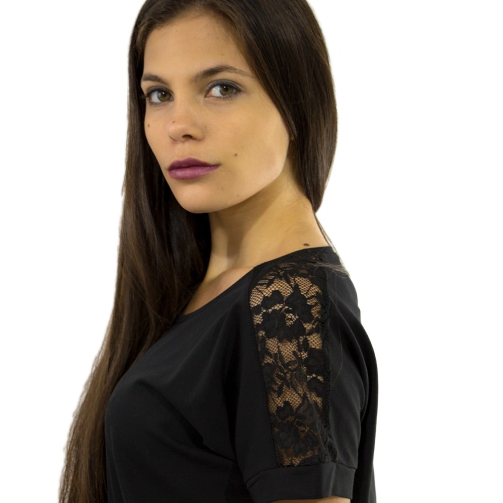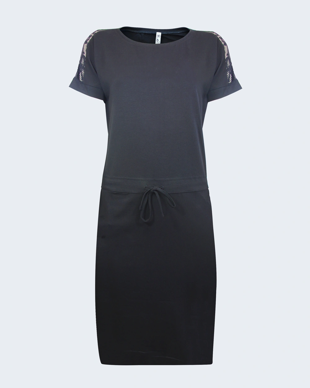 Спортно-елегантна рокля подходяща за ежедневието – Къс ръкав – Дантела на рамената – Колан с връзка – Произведена в България