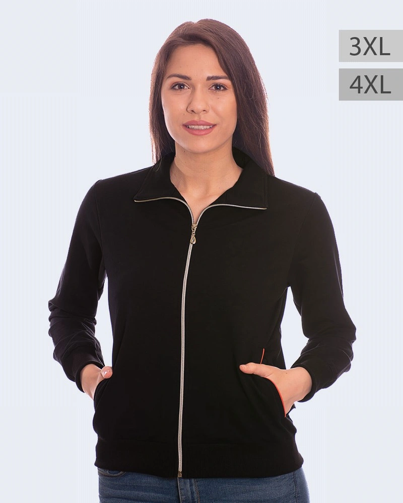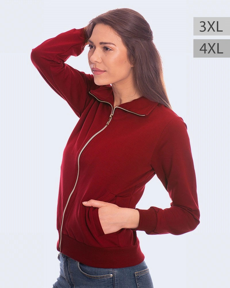 Дамски суитшърт без качулка: – Лека и приятна материя – Свободна кройка – Два странични джоба – Еластични маншети на ръкавите – Размери 3XL и 4XL – Произведено в България