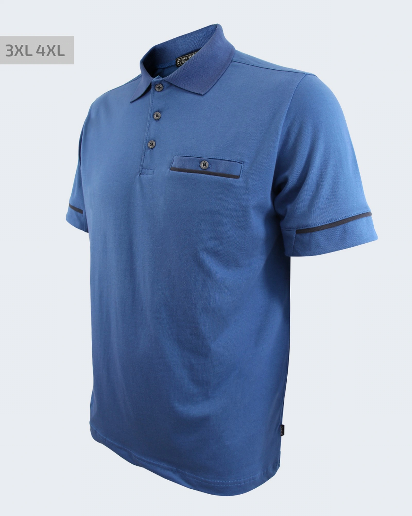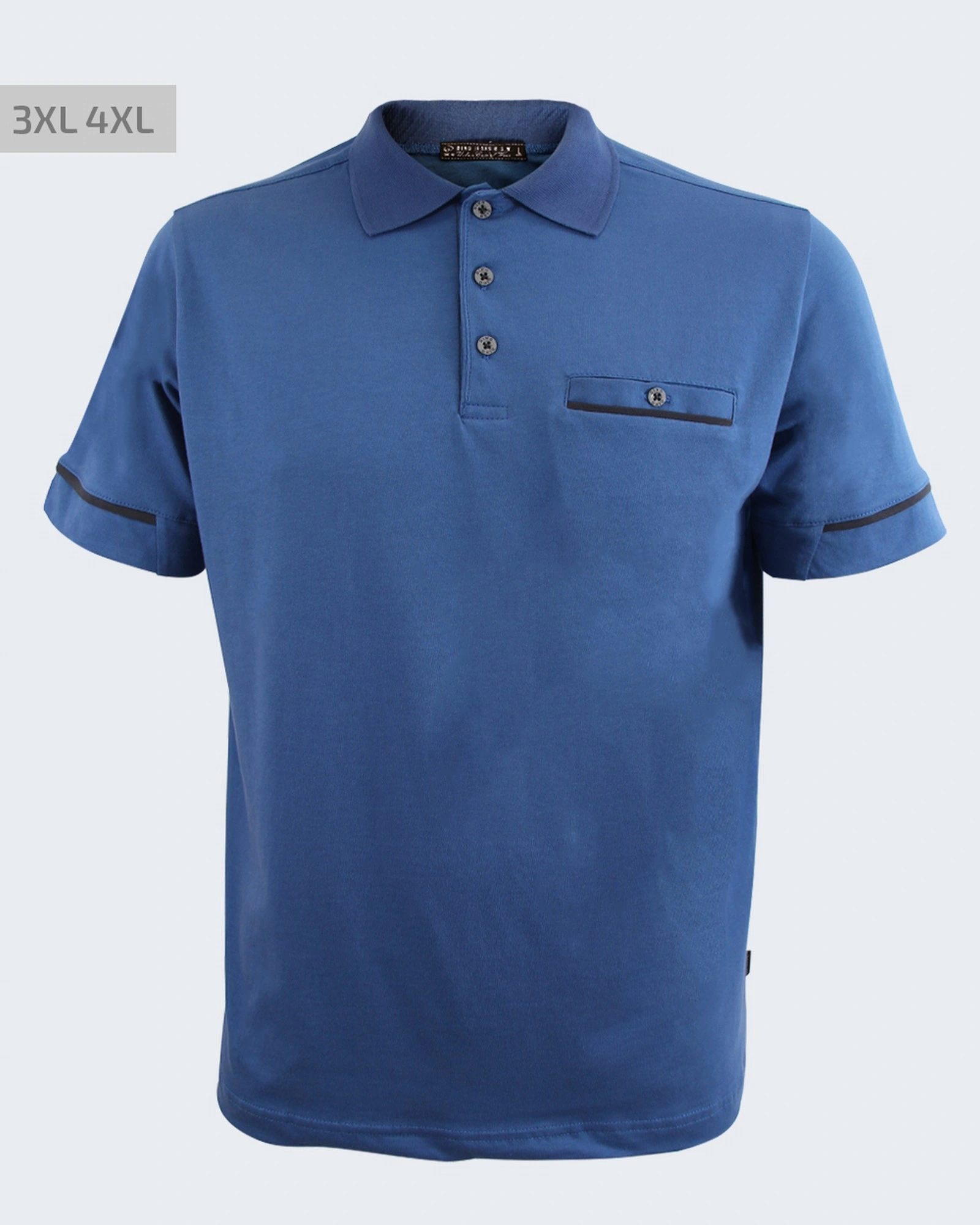 Мъжка памучна блуза с къс ръкав: – Класическа блуза за работното място или времето с приятели. – Свободен силует – Яка с копчета – С джоб – Размер 3XL и 4XL – Произведено в България